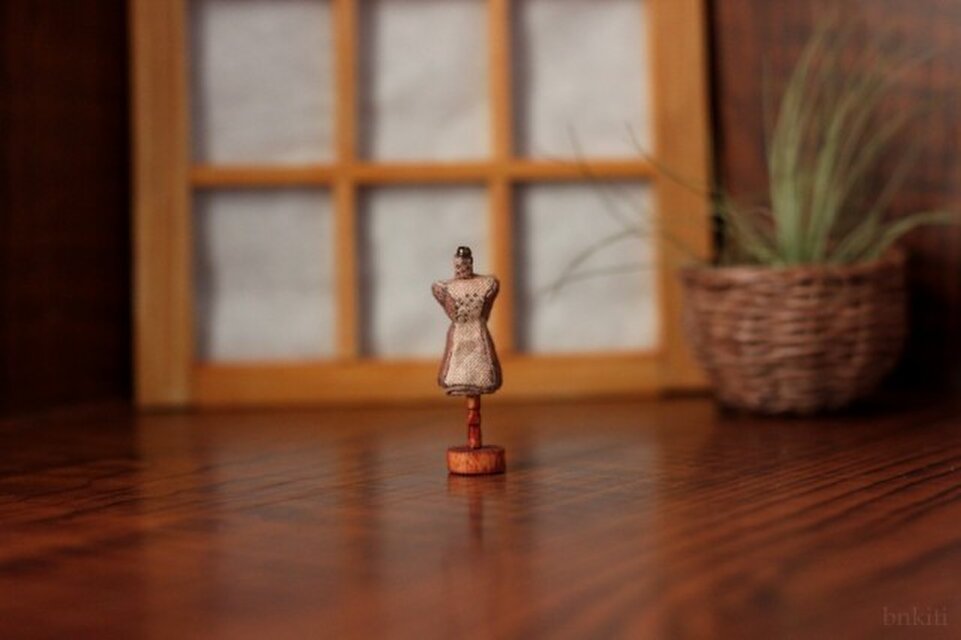 手縫いで作成したミニチュアのトルソーです。