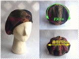 ウールレースのベレー帽です。パッチワーク風のプリントで楽しい生地です。