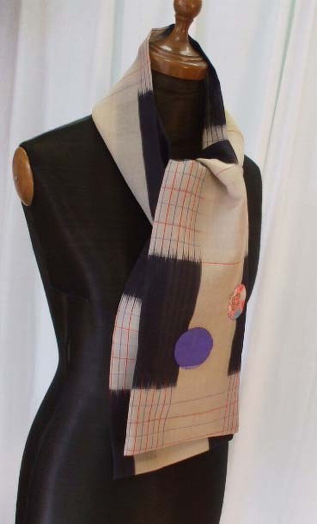 アンティーク着物の身頃からのリメイクです。紗で紬風のおしゃれな柄の着物はめずらしくなかなか出会えません。柄もおしゃれでとても気に入りストールにしてみました。