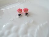 綺麗めバラのカボション(樹脂:約10㎜、☆作品番号(480)の②ローズピンク)、チタンポストピアス&チタンキャッチ(カラー:生地)、予備用のシリコンキャッチ、業務用超強力ボンド。