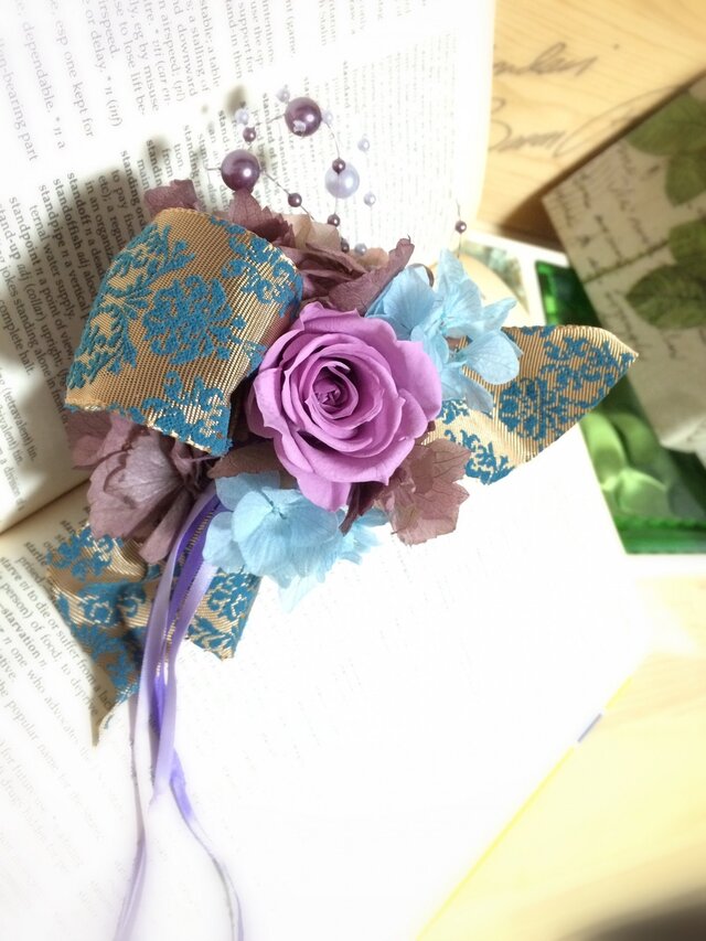 パープル×リボンのコサージュ【プリザ】★入・卒業式に★