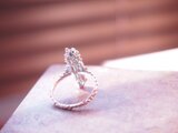 とても素敵に仕立ててくださりありがとうございました。ご丁寧に都度進捗状況もお送りいただきましたので、どのような姿になっているかは把握していたのですが、実物は見た瞬間感動が押し寄せる程素敵で、ため息が出るほどに美しく繊細です。どこから見ても本当に隙のない可憐なデザインで、眺めているだけでも幸せなのですが、せっかくリングに仕立てていただいたので大切に使用したいと思います。本当にありがとうございました!