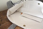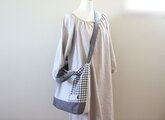 グレー×ホワイトのチェックをメインにグレーにあう生地をパッチしています。裏地はグレージュのコットンを使っています。