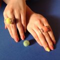 Silver950のプレートで羊毛ボールをはさみ、ビスでとめました。ビスを外して羊毛ボールを取り替えることができます。その日の気分やファッションに合わせてお楽しみいただけます。緑の羊毛ボールを一つお付けします。2010年ジュウリーアート展入選作品です。羊毛ボールは色をご指定いただけば、追加オーダーも可能です。別項目からご注文下さい。サイズは12号から15号までなら調整できます。それ以外のサイズにつきましては新規にお作りする事も可能です。ご相談ください。