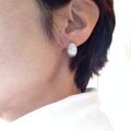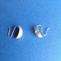 Silver950の0.7mm厚のプレートを小さなコロンとしたピアスにしました。表面はヘアライン仕上げです。フックは正面から見えないN字型フック(作者オリジナル 実用新案取得済)です。通常のフックでお作りすることもできます。