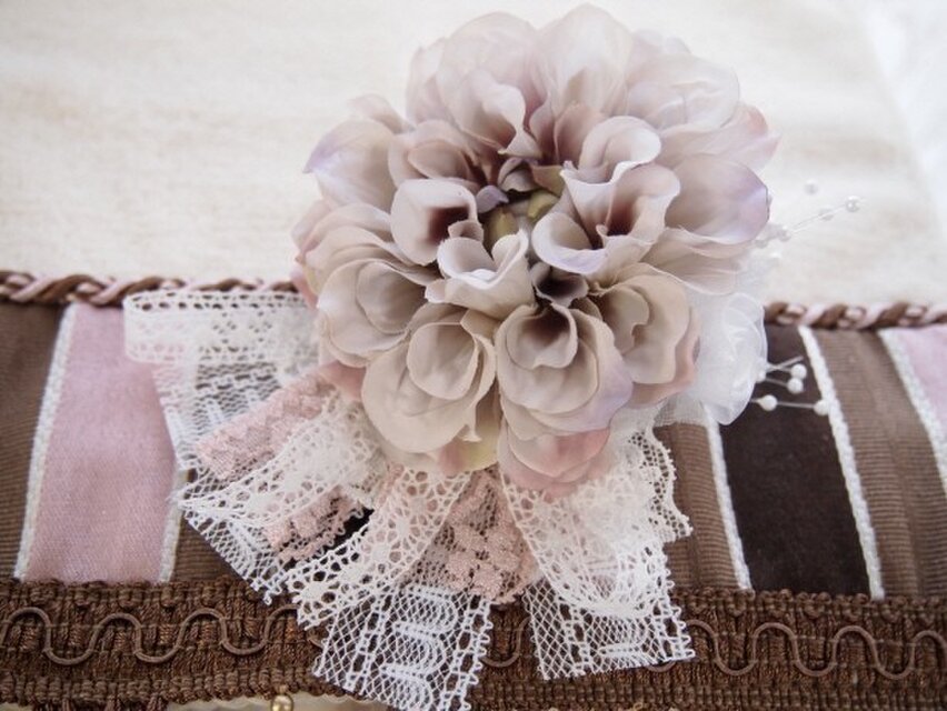 結婚・入学式にピッタリの大人可愛い上品なコサージュですが、ハサミピンと安全ピンが付いていますのでバックチャーム、帽子の飾り、ストール留めにも使えます。