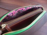 3way長財布ポシェット、オイルレザー×リバティ...チョコ