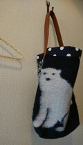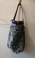 もこもこ生地を2種配色したシロクマのバックです。しっぽと革の持ち手がポイントです。