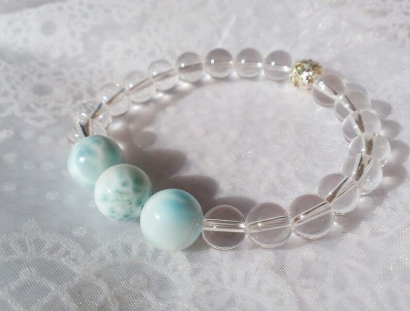 大粒のラリマーを贅沢に3つ使ったブレスレットです。