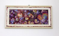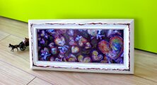 フレーム外枠サイズは160×328mm、ガラス面、横置きでスタンド・フック掛け、どちらでも飾れます。クリーム色のフレームに、アクリル絵の具で装飾&着色を施しています。
