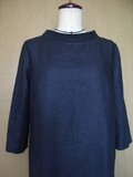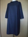 Aラインで首から少し離れたスタンドカラーのワンピースです。衿幅は3センチです。