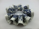 紺地に草原を書き起こした繊細な柄のリバティ ジューンズ・メドウ をオフホワイトサテンでふちどりしたシュシュです。ネイビーと白がメインのさわやかな一品です♪