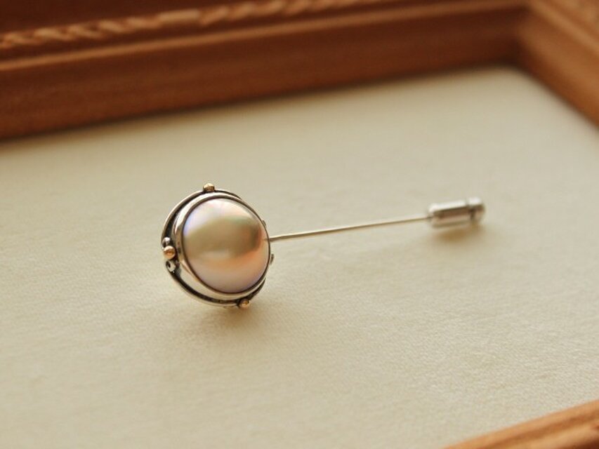 アイボリー~淡いオレンジ系の柔らかい色合いで、照りも良いマベパールです