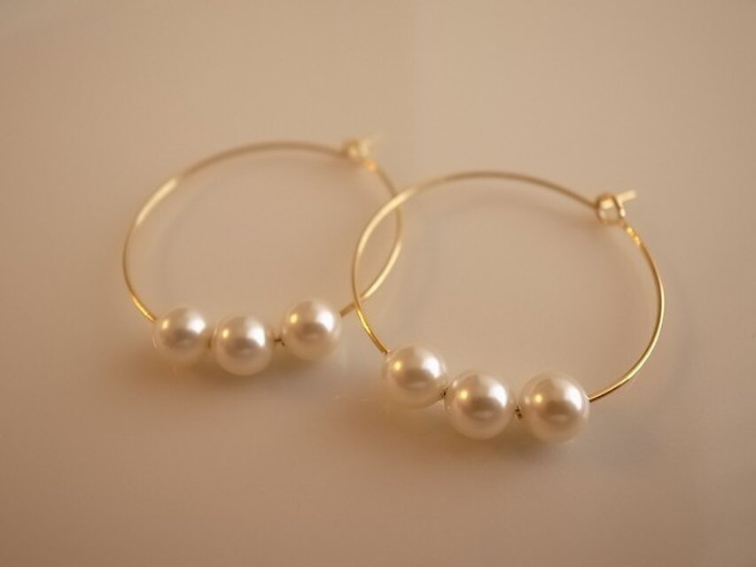 フープピアスは横顔を華やかに見せてくれますよ。:*☆