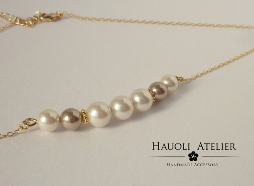 シルキーパールのナチュラルとブラウンを組み合わせたネックレスです。