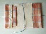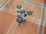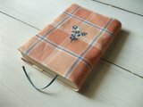 花刺繍の文庫本ブックカバー 麻 アプリコットオレンジチェック