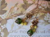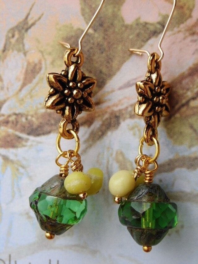 14kgf 2way 金色と深い緑のピアス