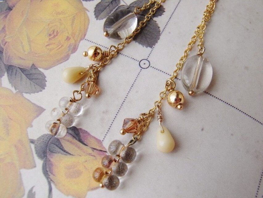 作品受け取りました、ポーチの花にかこまれて何か物言いたげな優しい表情のネコちゃんがとても雰囲気があって素敵です、グラスコードも金と銀のビーズが繊細でてんとう虫のビーズの可愛らしさは想像以上でした、ありがとうございました。