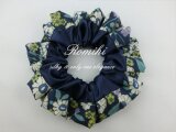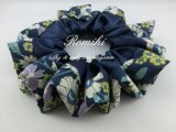 紺色地に大き目の花がプリントされたリバティとネイビーサテンを組み合わせたシュシュです♪ネイビーのおしゃれなシュシュです☆