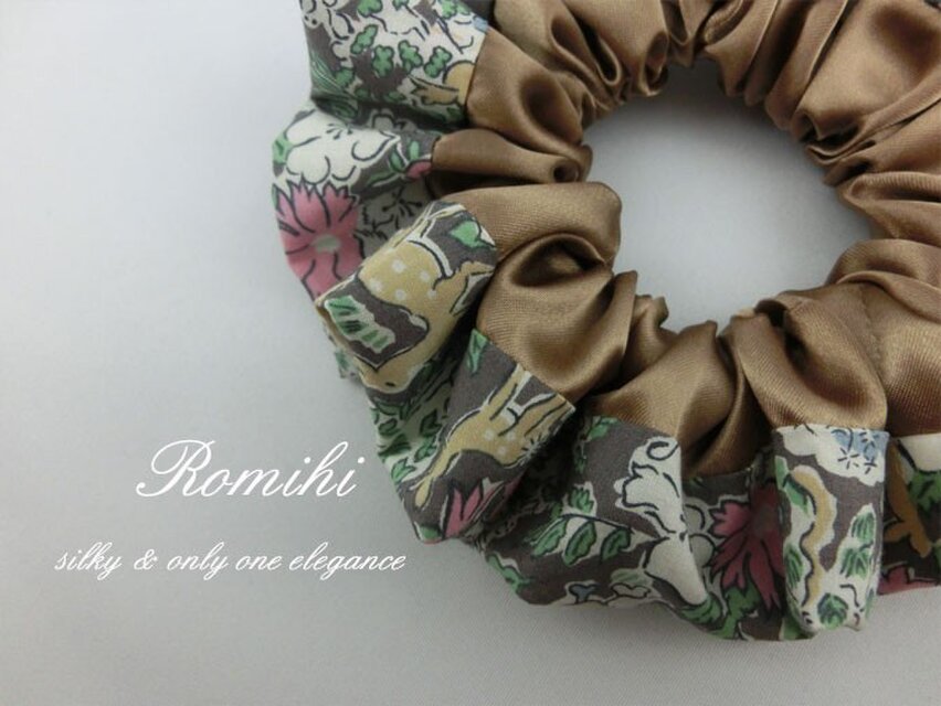 ☆リバティファーガスとローアンバーサテンの組合せシュシュ☆