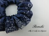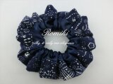 やわらかな手触りの細コーデュロイリバティアカンドカとネイビーサテンを組み合わせたシュシュです♪薄いコーデュロイ生地なので普通のシュシュと同じように使って頂けます。