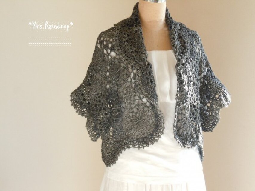丸いモチーフをつないでボレロにしました。