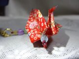 折り紙で作った鶴をニスで固めてクラック水晶で繋ぎました.+*:゚+。.☆