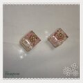 立方体モチーフの中にピンクビーズを散りばめ、桜のモチーフを付けました