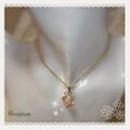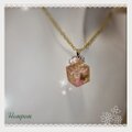立方体モチーフの中にピンクビーズを散りばめ、桜のモチーフを付けました