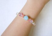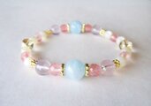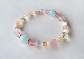カットのチェリークォーツと金色パーツをちりばめたブレスレットです。