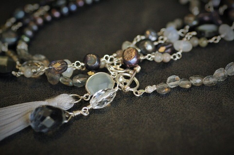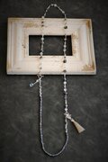 そしてムーンストーンやアイオライトなどの天然石をシルバーピンで一つずつ繋げたロングネックレス。