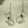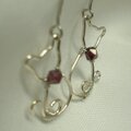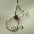 猫をシルバーワイヤーで創りました。 ひとつひとつ手造りですので、微妙に違いはありますが、丁寧に創る事を心がけています。 石はガーネットを使っています。(お好みの石で創ることも出来ます)