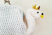 白鳥の湖をテーマに制作した、白鳥のがまぐちです。 オデットは特別な白鳥ですので、ティアラを被っています。