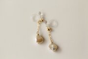 肌に触れる部分がプラスチックで、パールにつけた金具やチェーンはゴールドフィルドなので金属アレルギーの方にもやさしいピアリングです。