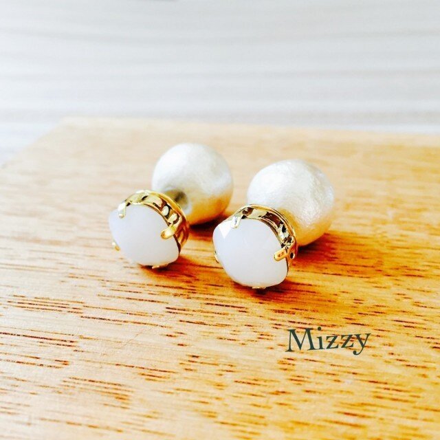 ✳︎スワロフスキーの面と、コットンパールの面、どちらを正面にしても、後ろが主張しすぎない、シンプルなピアスです。
