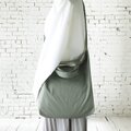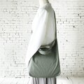 洗いをかけたコットンキャンバス地を使って、ショルダーにもなるバッグを作りました。