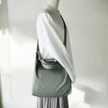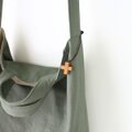 肉厚でしっかりとした生地ですが、洗い込んであるので帆布よりもやわらかな肌触りでくったりしています(*^_^*)ニュアンスのあるちょっとくすんだピスタチオグリーンががかっこいいです。