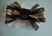 落ち着いた、シャンパンベージュ系のオーガンジーリボンと、漆黒のサテンリボンをあわせて。 エレガントな大人のイメージです。