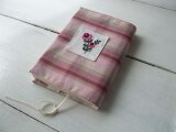 花刺繍の文庫本ブックカバー ピンクチェック