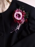 花弁が幾重にも重なりコロンとした形が愛らしいプリザーブドフラワーのオールドローズを使用したコサージュです。