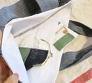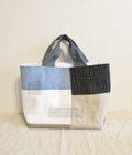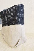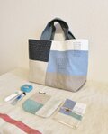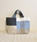 ネイビーとブルー、白とナチュラルリネンをパッチワークし、