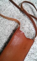 首掛けできるスマホケースです。しっかりしつつも柔らかな革で