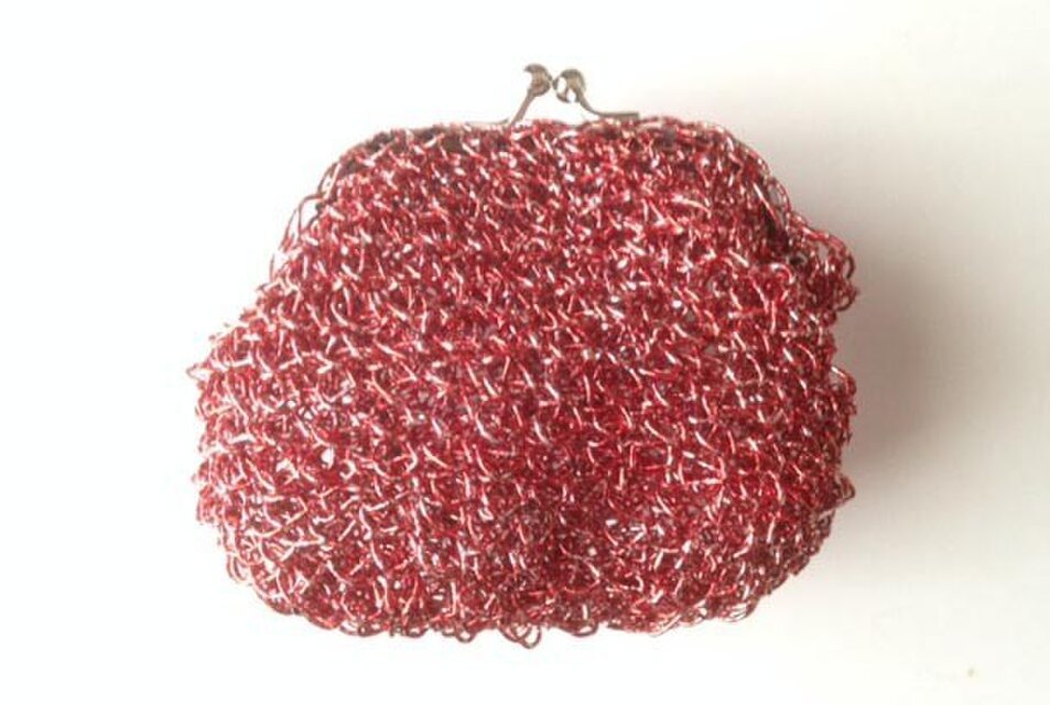 赤と銀がきらきら光ってきれいながまぐちに仕上がりました。