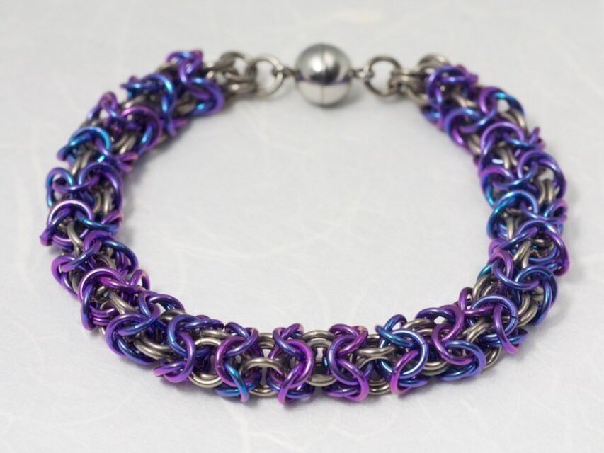 ジャンプリングにはアノダイズドニオビウム、留め具はステンレススチールのマグネットクラスプです。カラーミックスのリング(ベリーブレンド)を使用してナチュラル感を出しています。