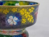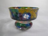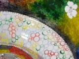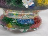 高台のガラスのボールにもこもこお花を手描き致しました。華やかお花を一杯描きました。使って楽しく、飾って優しく。よろしくお願いいたします。