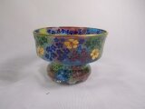 高台のガラスのボールにもこもこお花を手描き致しました。華やかお花を一杯描きました。使って楽しく、飾って優しく。よろしくお願いいたします。