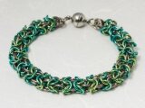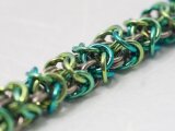 ジャンプリングにはアノダイズドニオビウム、留め具はステンレススチールのマグネットクラスプです。カラーミックスのリング(スプリンググリーンブレンド)を使用してナチュラル感を出しています。