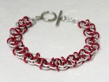 ジャンプリングにはアノダイズドアルミニウムのフロストとレッドの2色を使用、留め具はステンレススチールのトグルクラスプです。