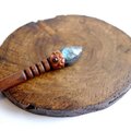 柔らかな光を放つ天然石とウッドスティックを専用の樹脂で接着したオリエンタルなカンザシです。