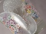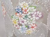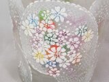 ガラスのコップに刺繍のようにお花とレースを手描きしています。細かい作業が自慢の1つになりました。手で持った時のもこもこ感がいいですよ。楽しんで使っていただけると嬉しいです。
